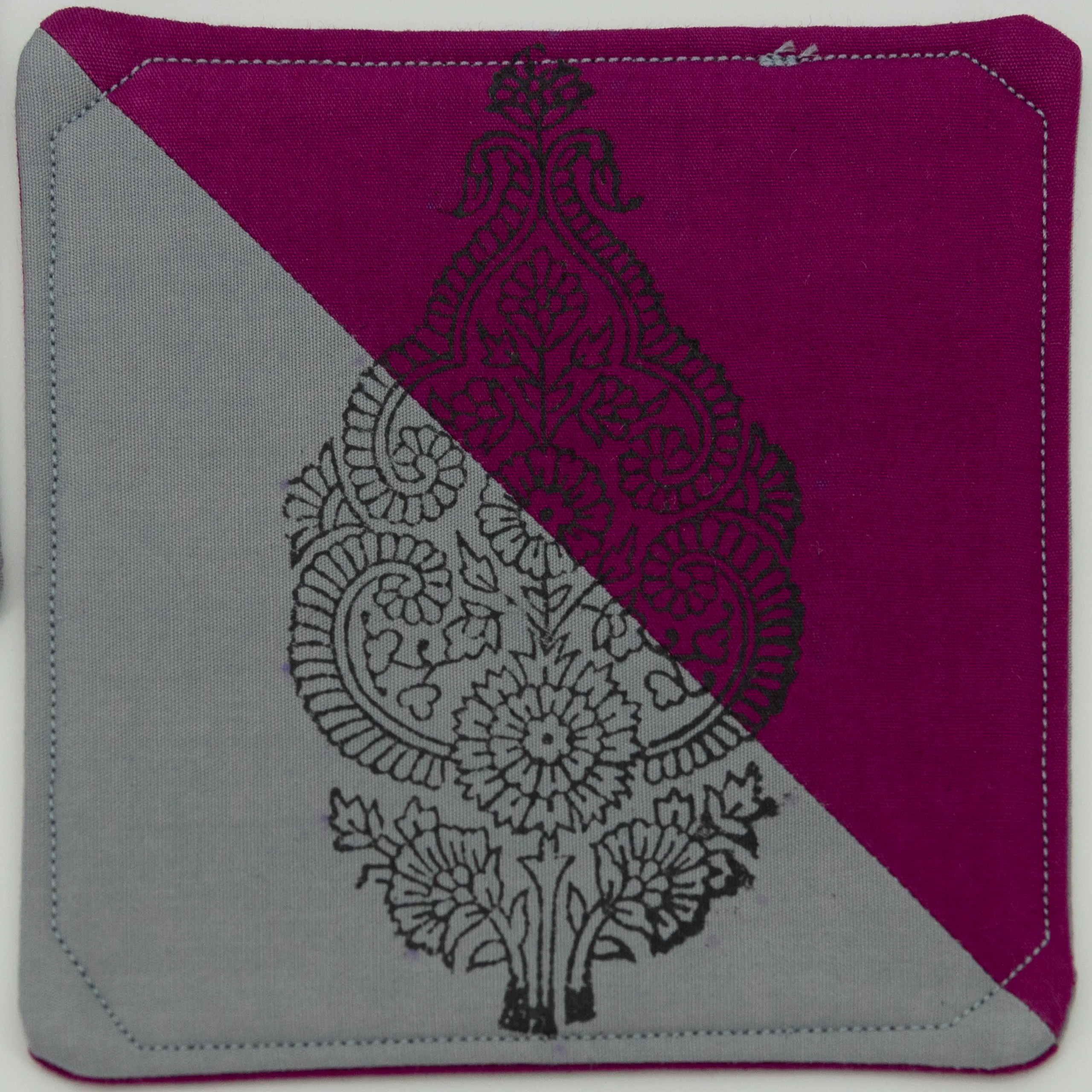 - Fabric: The two faces of the coaster are made with 100% long-staple hand-dyed cotton and filled with 100% cotton batting that works well for absorption. Ideal for your chilled glass and your hot drink.